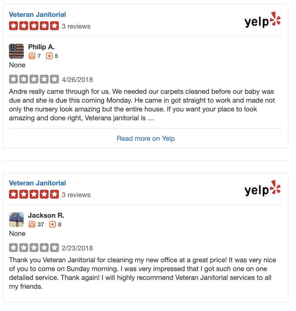 Veteran Janitorial is a family owned and operated company serving the High Desert. They provide janitorial services for commercial properties at an affordable rate. We provide services such as; office cleaning, strip and wax floors, carpet cleaning, rental cleanups, party clean up. American company with American workers! Hire A Vet!